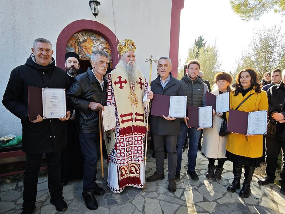 Митрополит Јоаникије на крају је додијелио неколико архипастирских грамата: господину Ристу Дрекаловићу из Подгорице (за показану љубав према овој светој обитељи и велику помоћ приликом изградње пута до овог манастира), Жељку Ђаловићу из Бара, Школи вјеронауке из Бара (дјечици која под руководством вјероучитељице Славице Орландић огранизују хуманитарне Божићне вашаре-прошле године су прикупљених 8.000 евра донирали за асфалтирање пута до овог манастира), Друштву доборвољних давалаца крви „Свети Јован Владимир“ из Бара, компанији „Царинвест“ из Грбља (за значајан прилог и допринос реализацији пројекта изградње пута), као и СПЦО Бар.