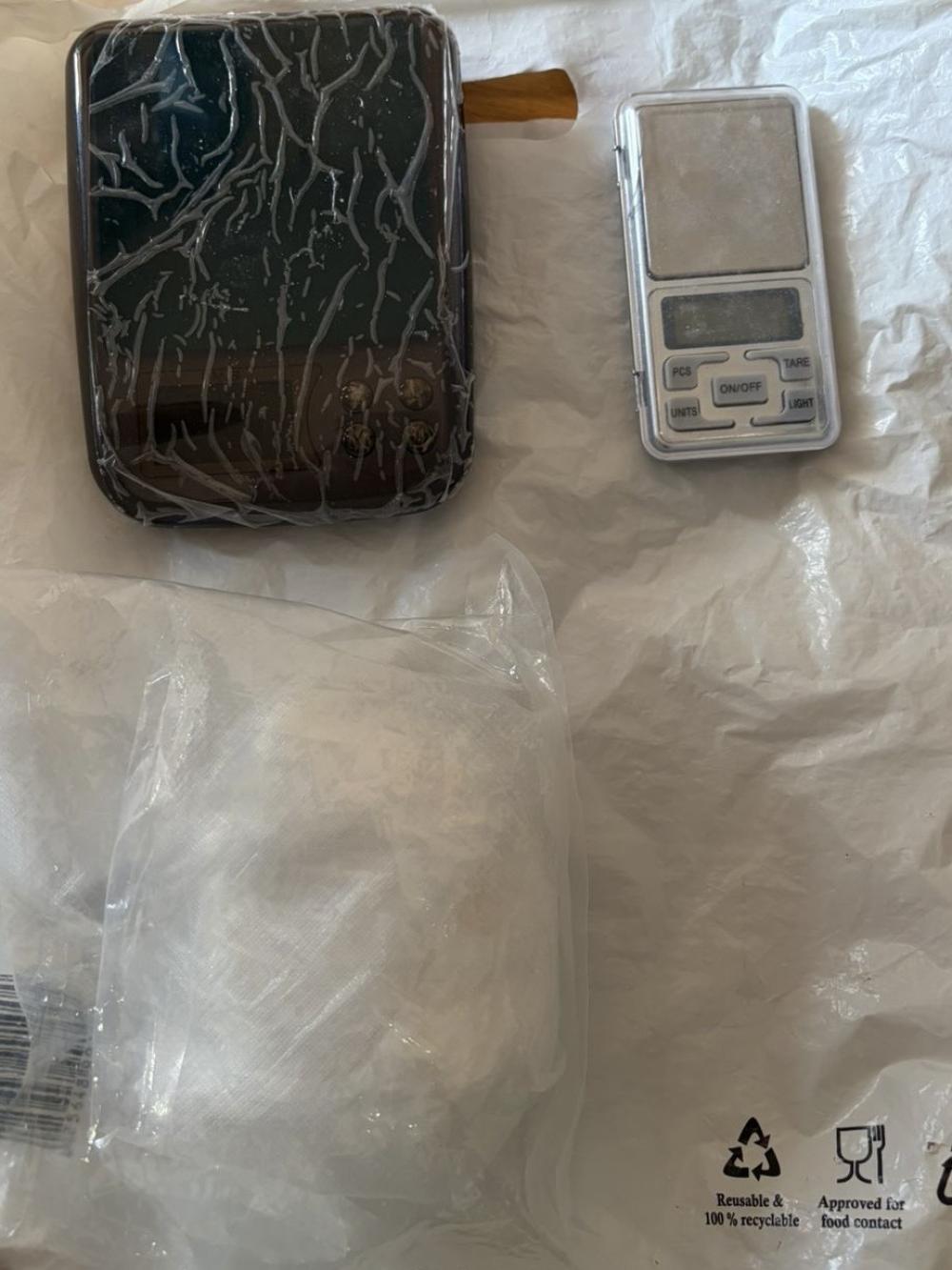 Претресом стана који користи ово лице, полиција је пронашла и одузела пиштољ марке „CZ Vzor“ са обрушеним серијским бројем, калибра 7,65 мм, као и два паковања бијеле прашкасте материје укупне масе око 300 грама, за коју се сумња да је опојна дрога кокаин. Такође, пронађене су и двије ваге за прецизно мјерење.