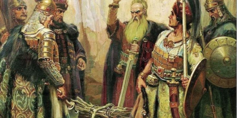 (На слици:Кан Кубрат, ујединитељ, са својим синовима)