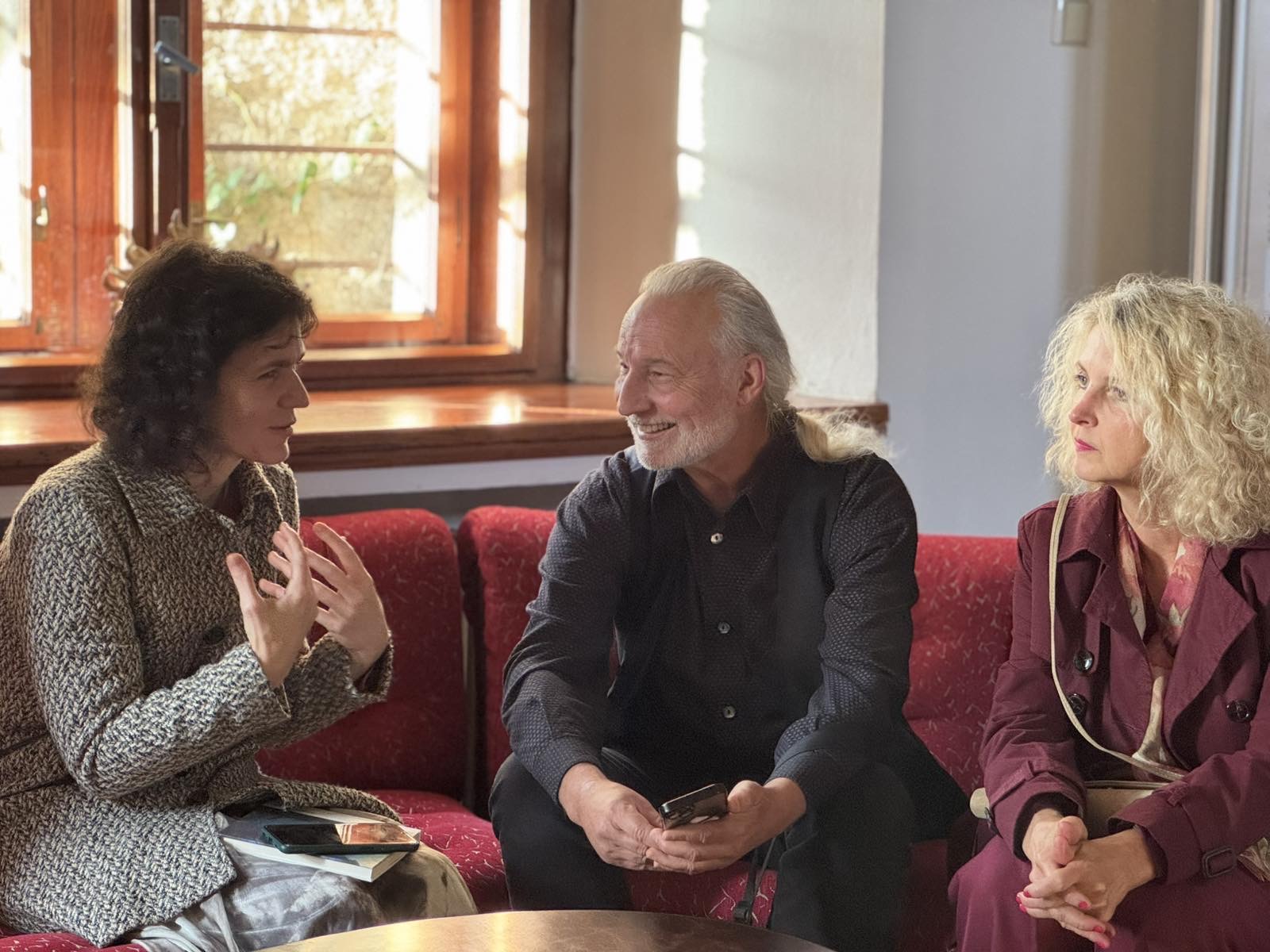Разгледам ово прелепо здање и правим прве фотографије током кратке шетње. Потом седимо у једном кафеу и чекамо да пристигну сви позвани словачки песници. Прво читање поезије организовано је у приземљу једне куле и на њему учествују само словачки аутори.