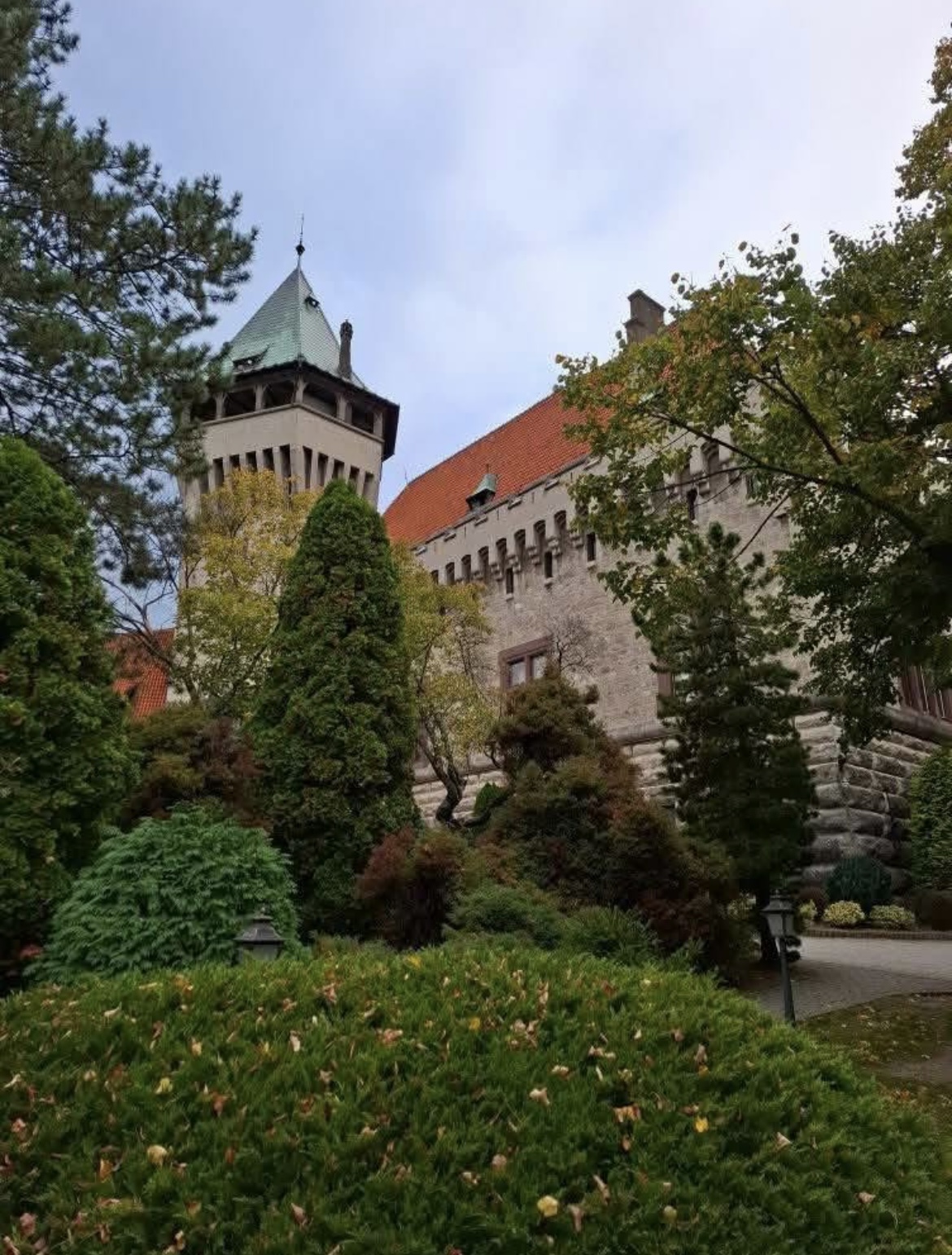 До замка нам је требало око сат времена. По пријави, свако одлази у своју собу. Моја се налази ван самог замка, у једној од неколико адаптираних кула, на највишем спрату. Једнокреветна је, модерно намештена, али релативно мала у поређењу са собом у хотелу „Матишак“. Није прозрачна и готово да нема светла, јер су прозори у соби и купатилу малих димензија – највероватније су некада служили као пушкарнице.