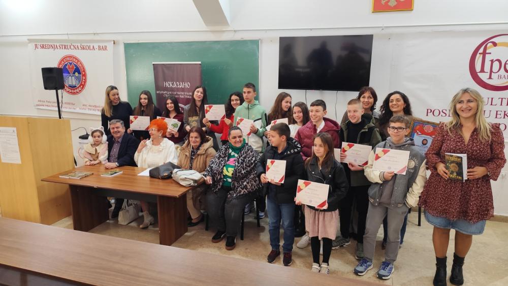 Међународно удружење књижевних стваралаца и умјетника Неказано – Бар, у сарадњи са ЈУ Средњом стручном школом Бар, Факултетом за пословну економију и право Бар и књижаром „Мирал“, уприличило је промоцију најуспјешнијих литерарних и ликовних радова ученика основних школа Бара, пристиглих за књигу „Бару на дар 2“.