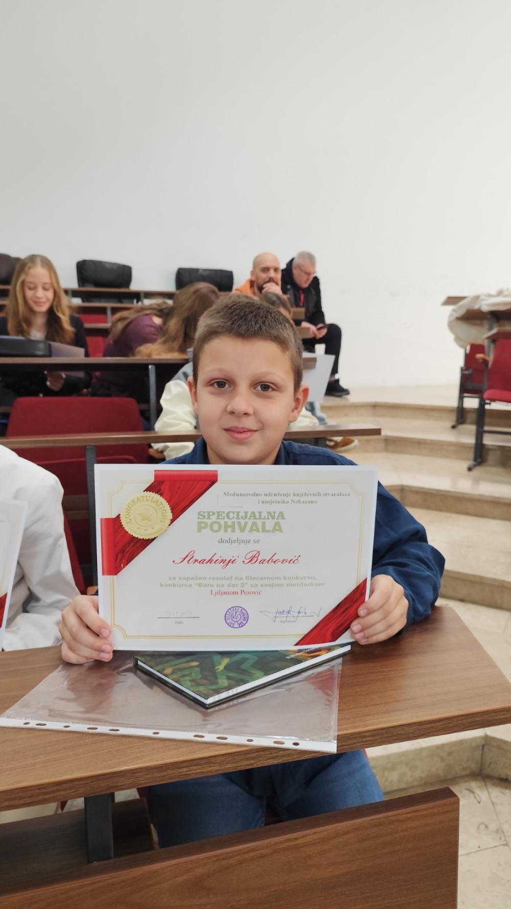 Специјалну награду – похвалу најмлађем аутору у књизи, Страхињи Бабовићу, ученику ИИИ разреда, уручила је Гордана Сарић, док му је Лончар додатно поклонио једну књигу Слободана Зорана Обрадовића.