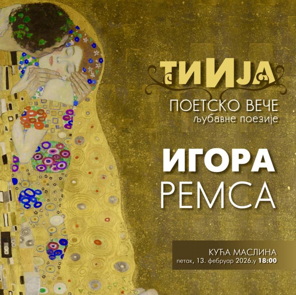 Бар ће у петак, 13. фебруара, бити мјесто сусрета поезије, емоције и умјетности. У пријатном амбијенту Куће маслина, са почетком у 18 часова, биће одржано поетско вече љубавне поезије под називом „Ти и ја“, на којем ће публика имати прилику да ужива у стиховима једног од најпрепознатљивијих барских књижевних стваралаца – Игора Ремса.