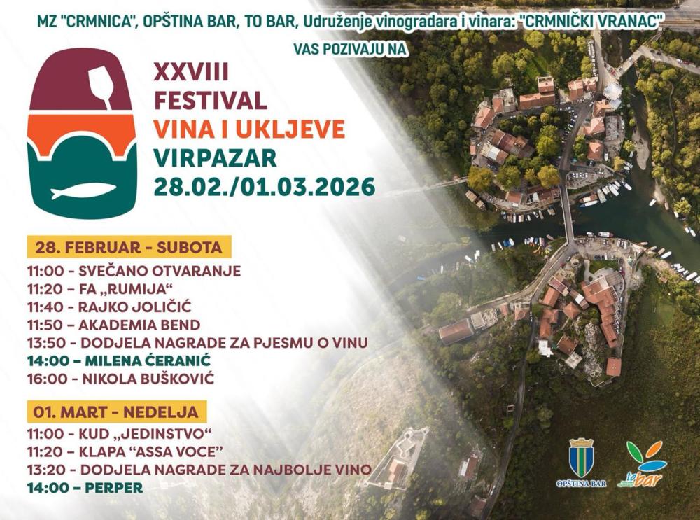 Tradicionalni Festival vina i ukljeve, 28. po redu, održaće se 28. februara i 1. marta, nastavljajući priču koja već gotovo tri decenije slavi bogatstvo Crmnice i Skadarskog jezera.