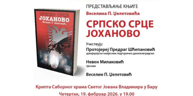 Pred barskom publikom biće predstavljen roman „Srpsko srce Johanovo“ autora Veselina P. Dželetovića — potresno i snažno književno svjedočanstvo o stradanju srpskog naroda na Kosovu i Metohiji, koje je svojom temom, emocijom i istinom duboko odjeknulo kako u regionu tako i širom svijeta.