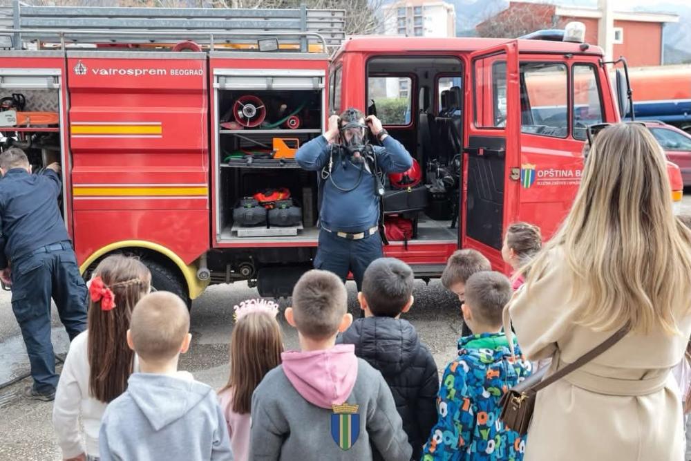 „Кроз ову едукативну и интерактивну посјету, малишани су на практичним примјерима проширили своја знања која стичу у оквиру редовних предшколских активности, те су у разговору са ватрогасцима сазнали како изгледа један њихов радни дан“, наглашава се у саопштењу.