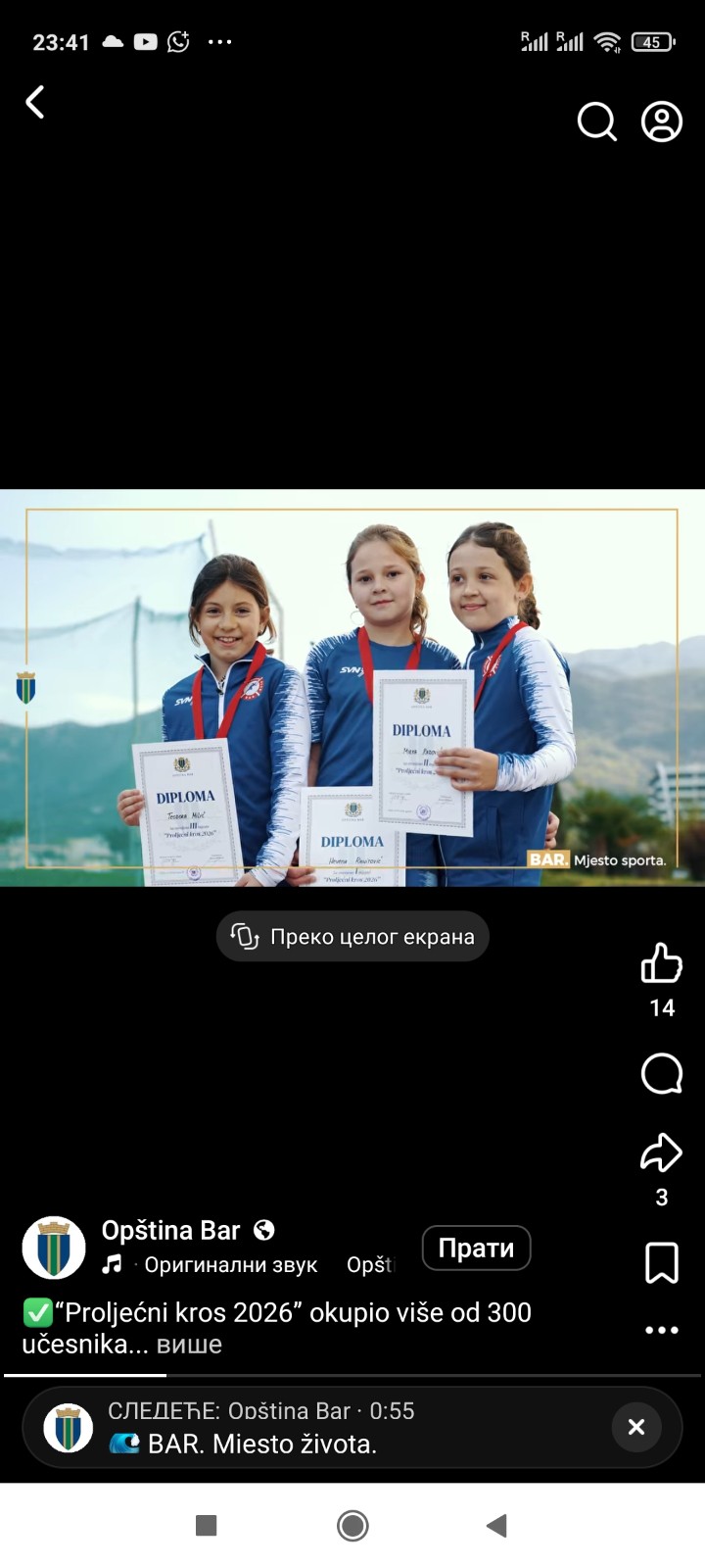 У организацији Општине Бар и Атлетског клуба „Морнар“, данас је на теренима спортског комплекса на Маџарици одржан „Пролећни крос 2026“, манифестација усмјерена на промоцију здравих стилова живота, развој спортских талената и јачање такмичарског духа код младих.