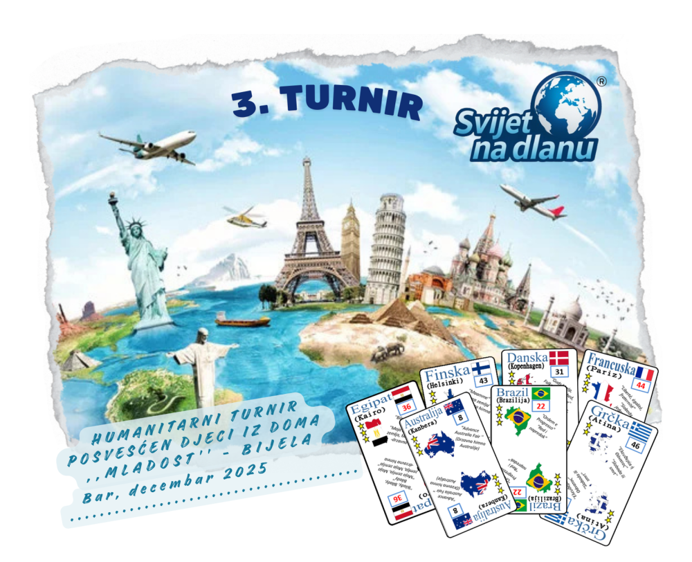 U Baru je počeo treći turnir u edukativnoj društvenoj igri „Svijet na dlanu“, koji se ove godine organizuje po drugačijem konceptu — kao humanitarni turnir sa ciljem prikupljanja pomoći za djecu bez roditeljskog staranja iz JU Dječiji dom „Mladost“ – Bijela.