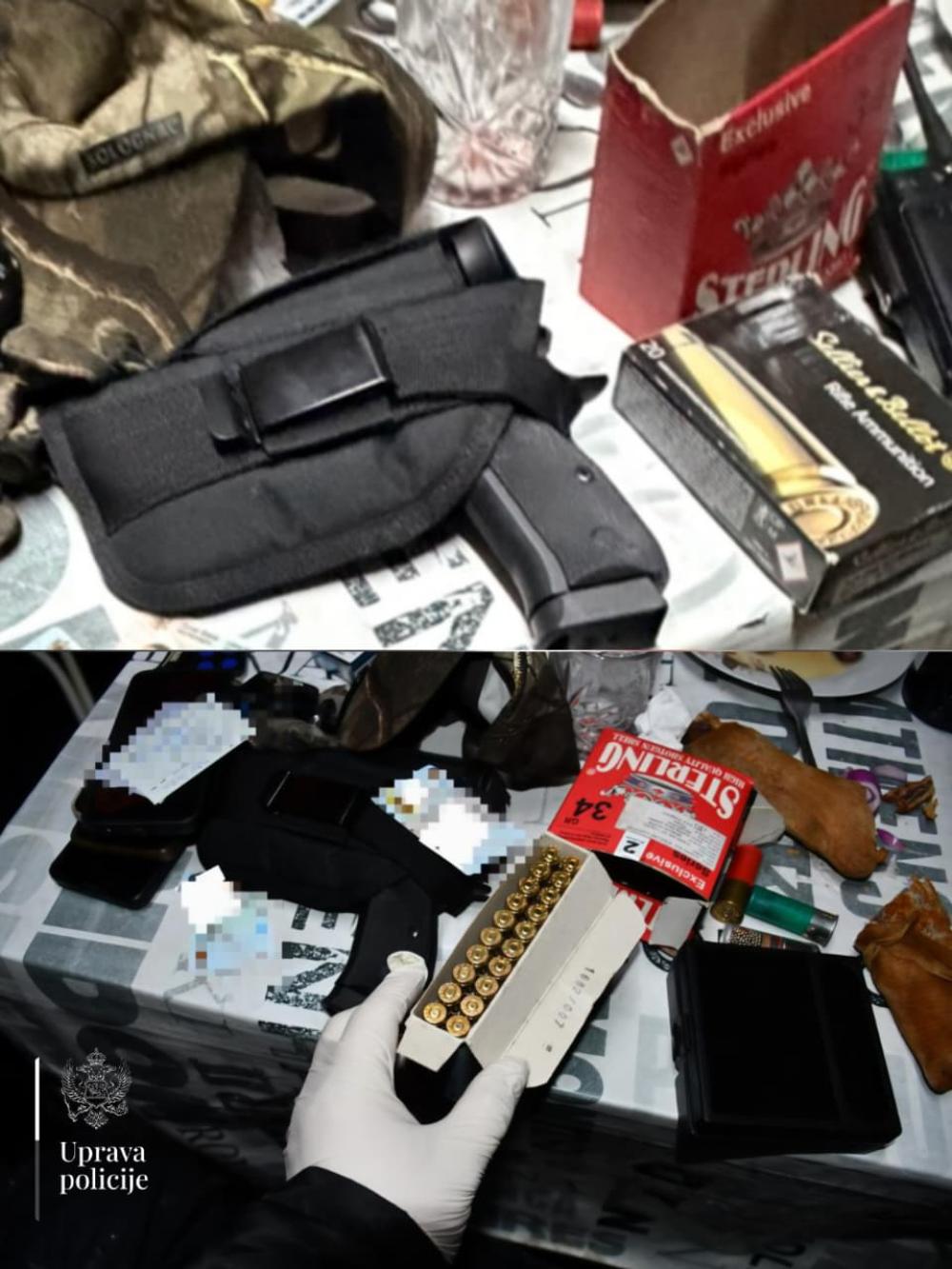 Ističe se da je od lica S.N. pretresom privremeno oduzet pištolj marke „Češka Zbrojevka 75“ sa okvirom u kojem se nalazilo 10 komada municije, kao i rezervni okvir sa još 10 komada pripadajuće municije. Nakon prikupljenog obavještenja, od istog lica je oduzet i pištolj marke „Brauning“, kao i ukupno 183 komada municije – 89 komada kalibra 7,65 mm i 94 komada kalibra 9 mm. Za navedeno oružje, kako se dodaje, lice S.N. posjeduje važeći oružni list.