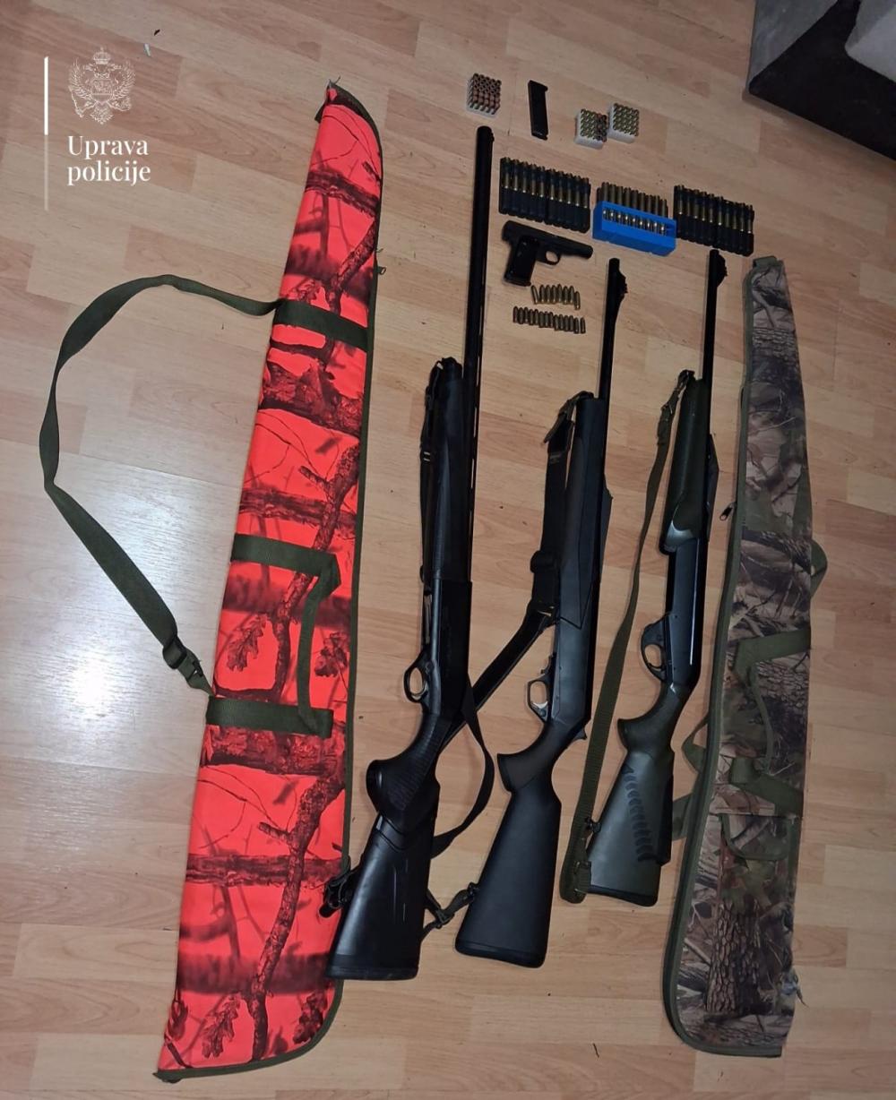 Takođe, tokom pretresa, od lica Z.V. je oduzet 31 komad municije različite vrste i kalibra, za koju je kriminalističkom obradom utvrđeno da pripada P.M. (26) iz Bara. Nakon prikupljenog obavještenja od lica P.M. su oduzete tri lovačke puške marke „Beneli“, „Bereta“ i „Brauning“, kao i 39 komada municije, za koje imenovani takođe posjeduje oružni list.