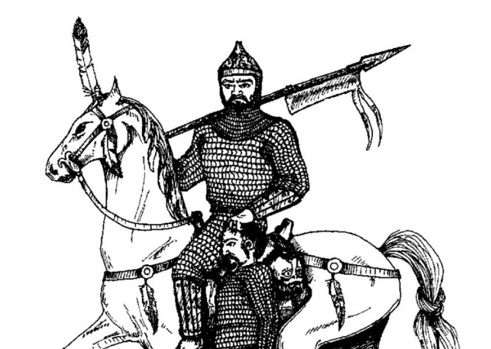 Hazarski ratnik sa zarobljenikom. Crtež Normana Finkelštajna, zasnovan na slici nomada na krčagu iz ostave Nađsentmikloš.