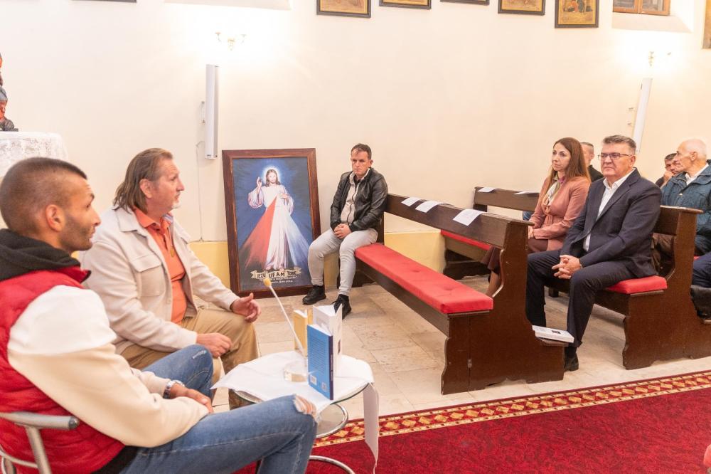 mr. sc. Zdravko Paladin predstavio je gosta večeri — književnika i muzičara Josipa Petrlića Pjera iz Križevaca, umjetnika, pedagoga i autora brojnih djela za djecu i odrasle. Pjer je okupljenima predstavio svoj roman „Muka po Stjepanu“, a svojim iskrenim svjedočanstvom o teškom djetinjstvu, životnim kušnjama i vjeri duboko je dirnuo publiku.