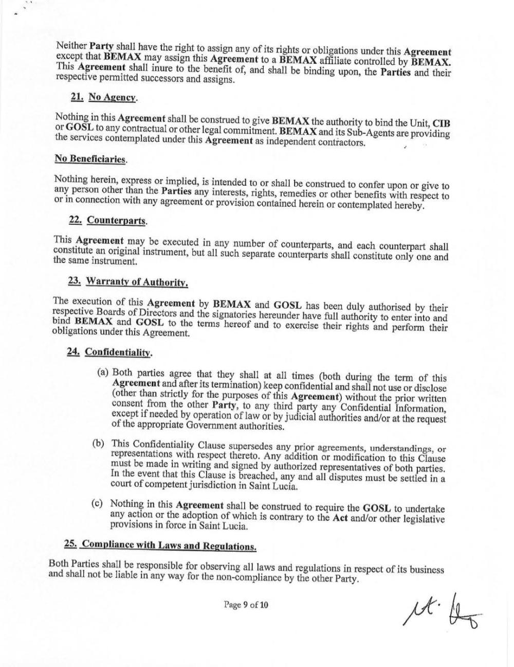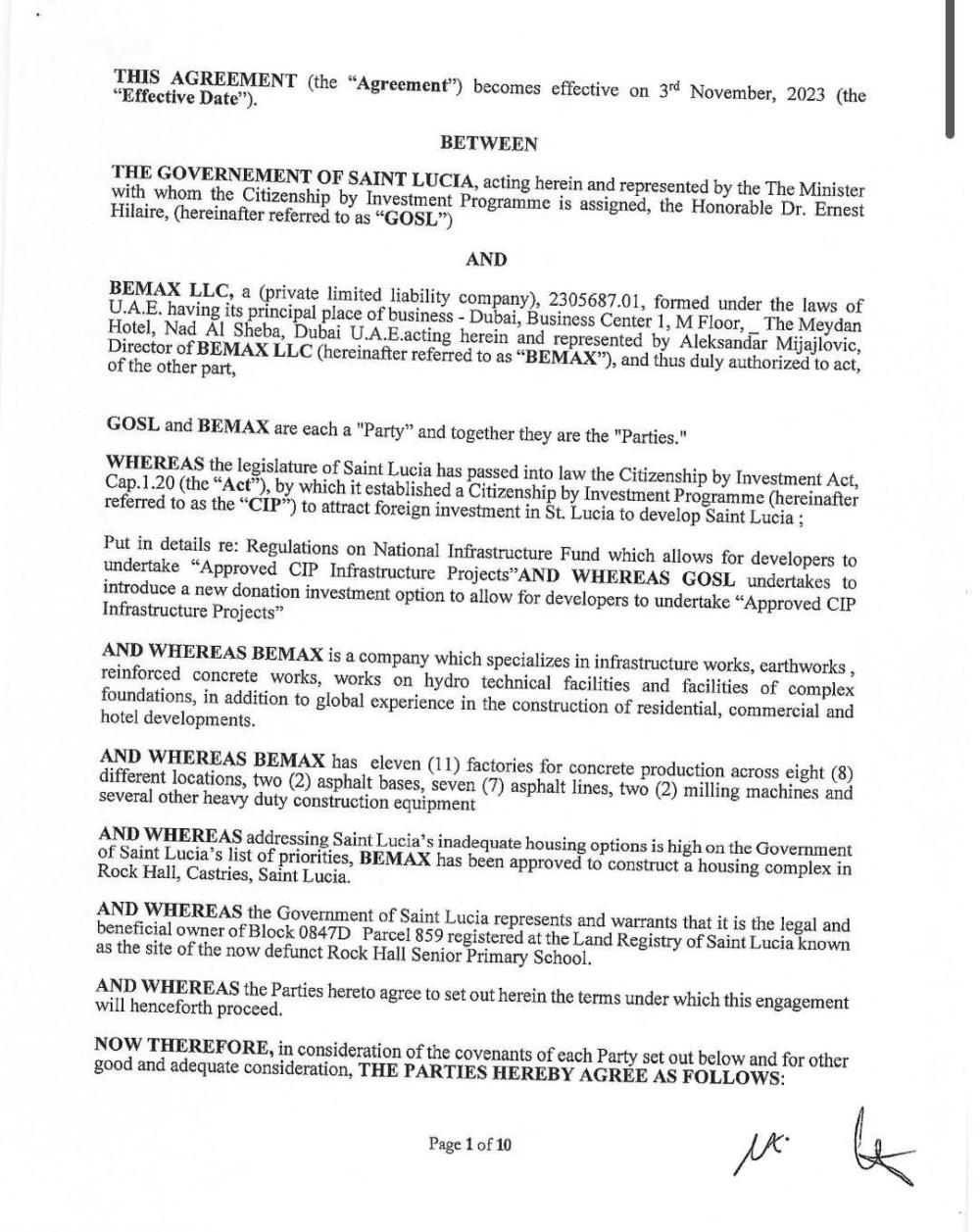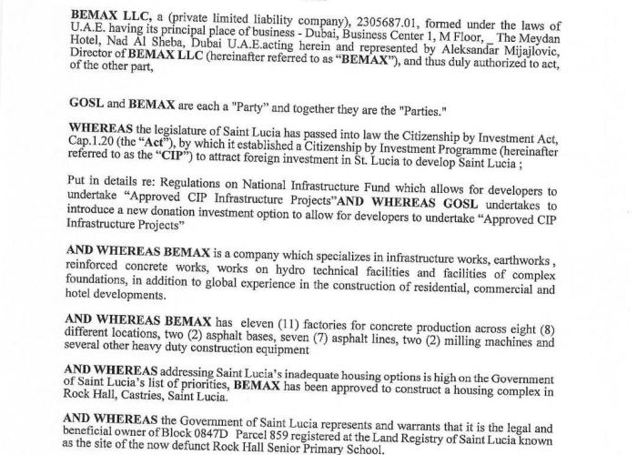 Лековић подсјећа да је 3. новембра 2023. године "БЕМАКС" потписао уговор са Владом Свете Луције о изградњи стамбено-пословног комплекса у главном граду те карипске државе, на локацији бивше школе у Кастрису.