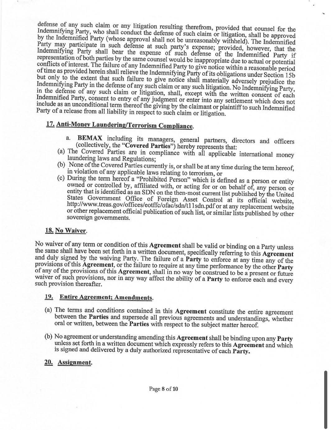 „Реални прилив средстава за овај пројекат креће се између 78 и скоро 90 милиона долара, што, након одбитка трошкова градње, управљања, маркетинга и провизија, оставља потенцијалну добит од 30 до чак 50 милиона долара. Ријеч је, дакле, о једном од најпрофитабилнијих послова које је "БЕМАКС" икада реализовао, уз минималан тржишни ризик“, наглашава он.